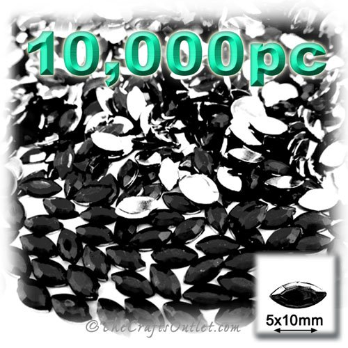 10,000pc Rhinestones Eye Shaped (Navette) Shape made of Quality Acrylic sparkling with multi Facetted sides and flat top Jet Black Flatback with Silver Aluminum foil mirror backing size - 5x10mmBuy these rhinestones and embellish a variety of crafts projects. You can add these Acrylic facetted rhinestones to many projectsAdd gemstones to Baby Keepsake items Blitz your nails with rhinestones Highlight your scrapbook memory pages with these colourful jewels Dazzle your picture frames and make uniq