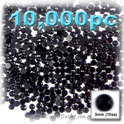 10,000pc Rhinestones Round Shape made of Quality Acrylic sparkling with multi Facetted sides and flat top Jet Black Flatback with Silver Aluminum foil mirror backing size - 3mm about Buy these rhinestones and embellish a variety of crafts projects. You can add these Acrylic facetted rhinestones to many projectsAdd gemstones to Baby Keepsake items Blitz your nails with rhinestones Highlight your scrapbook memory pages with these colourful jewels Dazzle your picture frames and make unique memories