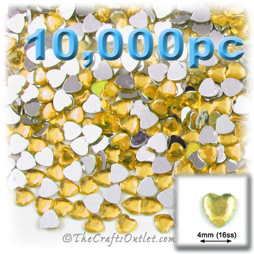 10,000pc Rhinestones Heart Shape made of Quality Acrylic sparkling with multi Facetted sides and flat top Golden Yellow Gems Flatback with Silver Aluminum foil mirror backing Buy these rhinestones and embellish a variety of crafts projects. You can add these Acrylic facetted rhinestones to many projectsAdd gemstones to Baby Keepsake items Blitz your nails with rhinestones Highlight your scrapbook memory pages with these colourful jewels Dazzle your picture frames and make unique memories for all