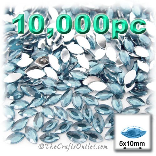 10,000pc Rhinestones crystals Eye Shaped (Navette) Shape made of Quality Acrylic sparkling with multi Facetted sides and flat top Light Blue Gems Flatback with Silver Aluminum foil mirror backing size - 5x10mmBuy these rhinestones and embellish a variety of crafts projects. You can add these Acrylic facetted rhinestones to many projectsAdd gemstones to Baby Keepsake items Blitz your nails with rhinestones Highlight your scrapbook memory pages with these colourful jewels Dazzle your picture frame