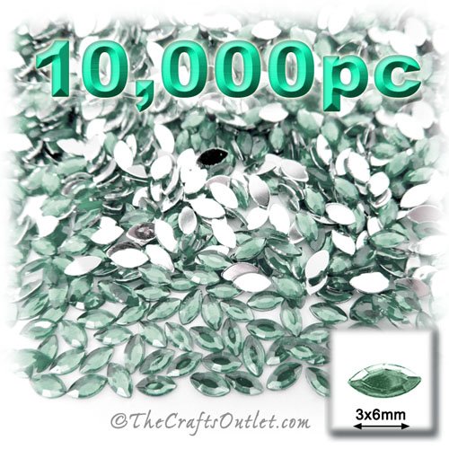 10,000pc Rhinestones crystals Eye Shaped (Navette) Shape made of Quality Acrylic sparkling with multi Facetted sides and flat top Peridot Light Green Gems Flatback with Silver Aluminum foil mirror backing size - 3x6mmBuy these rhinestones and embellish a variety of crafts projects. You can add these Acrylic facetted rhinestones to many projectsAdd gemstones to Baby Keepsake items Blitz your nails with rhinestones Highlight your scrapbook memory pages with these colourful jewels Dazzle your pictu