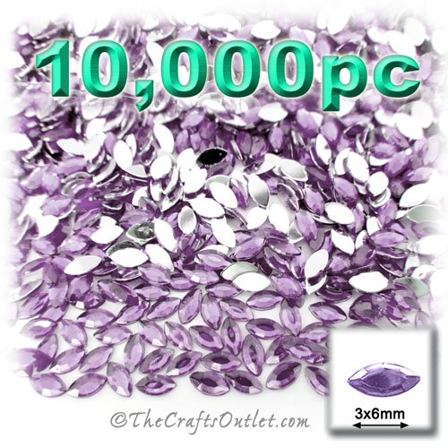 10,000pc Rhinestones crystals Eye Shaped (Navette) Shape made of Quality Acrylic sparkling with multi Facetted sides and flat top Lavender Light Purple Gems Flatback with Silver Aluminum foil mirror backing size - 3x6mmBuy these rhinestones and embellish a variety of crafts projects. You can add these Acrylic facetted rhinestones to many projectsAdd gemstones to Baby Keepsake items Blitz your nails with rhinestones Highlight your scrapbook memory pages with these colourful jewels Dazzle your pic