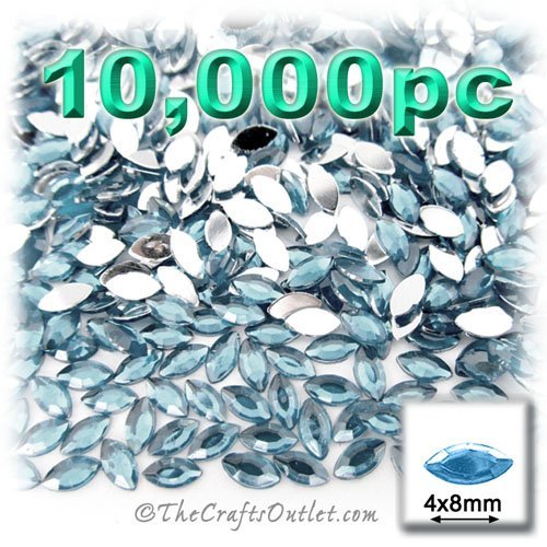 10,000pc Rhinestones crystals Eye Shaped (Navette) Shape made of Quality Acrylic sparkling with multi Facetted sides and flat top Light Blue Gems Flatback with Silver Aluminum foil mirror backing size - 4x8mmBuy these rhinestones and embellish a variety of crafts projects. You can add these Acrylic facetted rhinestones to many projectsAdd gemstones to Baby Keepsake items Blitz your nails with rhinestones Highlight your scrapbook memory pages with these colourful jewels Dazzle your picture frames