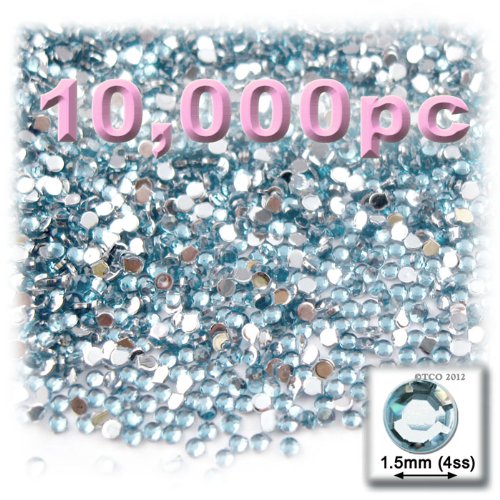 10,000pc Rhinestones crystals Round Shape made of Quality Acrylic sparkling with multi Facetted sides and flat top Light Blue Gems Flatback with Silver Aluminum foil mirror backing size - 1.5mm about Buy these rhinestones and embellish a variety of crafts projects. You can add these Acrylic facetted rhinestones to many projectsAdd gemstones to Baby Keepsake items Blitz your nails with rhinestones Highlight your scrapbook memory pages with these colourful jewels Dazzle your picture frames and mak