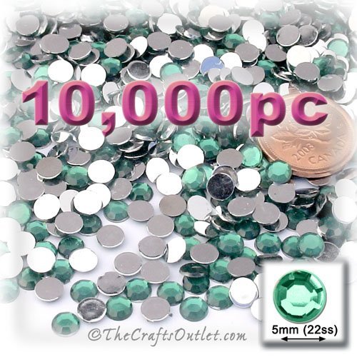 10,000pc Rhinestones crystals Round Shape made of Quality Acrylic sparkling with multi Facetted sides and flat top Emerald Green Gems Flatback with Silver Aluminum foil mirror backing size - 5mm about Buy these rhinestones and embellish a variety of crafts projects. You can add these Acrylic facetted rhinestones to many projectsAdd gemstones to Baby Keepsake items Blitz your nails with rhinestones Highlight your scrapbook memory pages with these colourful jewels Dazzle your picture frames and ma