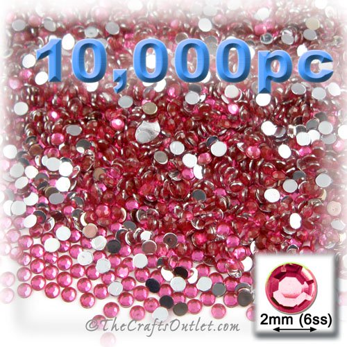 10,000pc Rhinestones crystals Round Shape made of Quality Acrylic sparkling with multi Facetted sides and flat top Hot Pink or Rose Gems Flatback with Silver Aluminum foil mirror backing size - 2mm about Buy these rhinestones and embellish a variety of crafts projects. You can add these Acrylic facetted rhinestones to many projectsAdd gemstones to Baby Keepsake items Blitz your nails with rhinestones Highlight your scrapbook memory pages with these colourful jewels Dazzle your picture frames and