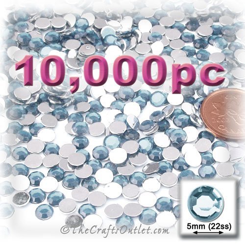 10,000pc Rhinestones crystals Round Shape made of Quality Acrylic sparkling with multi Facetted sides and flat top Light Blue Gems Flatback with Silver Aluminum foil mirror backing size - 5mm about Buy these rhinestones and embellish a variety of crafts projects. You can add these Acrylic facetted rhinestones to many projectsAdd gemstones to Baby Keepsake items Blitz your nails with rhinestones Highlight your scrapbook memory pages with these colourful jewels Dazzle your picture frames and make