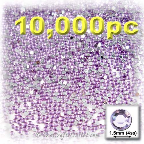 10,000pc Rhinestones crystals Round Shape made of Quality Acrylic sparkeling with multi Facetted sides and flat top Lavender Light Purple Gems Flatback with Silver Aluminum foil mirror backing size - 1.5mm about 4ssBuy these rhinestones and embellish a variety of crafts projects. You can add these Acrylic facetted rhinestones to many projectsAdd gemstones to Baby Keepsake items Blitz your nails with rhinestones Highlight your scrapbook memory pages with these colorful jewels Dazzle your picture