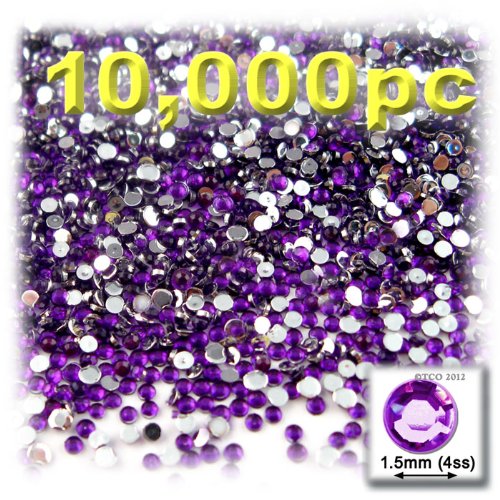 10,000pc Rhinestones Round Shape made of Quality Acrylic sparkling with multi Facetted sides and flat top Purple Gems Flatback with Silver Aluminum foil mirror backing size - 1.5mm about Buy these rhinestones and embellish a variety of crafts projects. You can add these Acrylic facetted rhinestones to many projectsAdd gemstones to Baby Keepsake items Blitz your nails with rhinestones Highlight your scrapbook memory pages with these colourful jewels Dazzle your picture frames and make unique memo