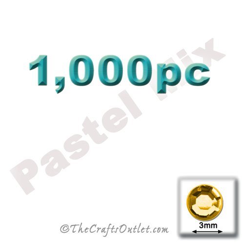 10,000pc Rhinestones crystals Round Shape made of Quality Acrylic sparkling with multi Facetted sides and flat top Pastel Assortment - 6 Colors (Light Baby Blue, Light Rose Pink, Light Green Peridot, Light purple Lavender, Yellow, Clear) Gems Flatback with Silver Aluminum foil mirror backing size - 3mm about Buy these rhinestones and embellish a variety of crafts projects. You can add these Acrylic facetted rhinestones to many projectsAdd gemstones to Baby Keepsake items Blitz your nails with rh