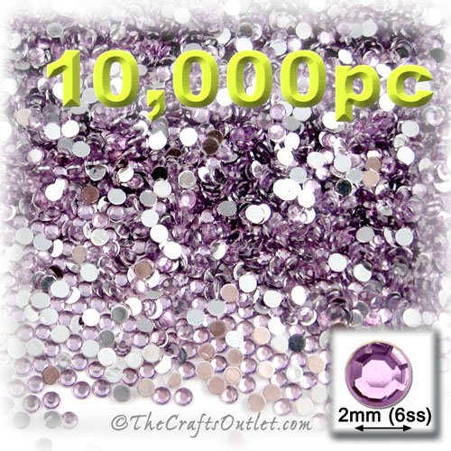 10,000pc Rhinestones crystals Round Shape made of Quality Acrylic sparkling with multi Facetted sides and flat top Lavender Light Purple Gems Flatback with Silver Aluminum foil mirror backing size - 2mm about Buy these rhinestones and embellish a variety of crafts projects. You can add these Acrylic facetted rhinestones to many projectsAdd gemstones to Baby Keepsake items Blitz your nails with rhinestones Highlight your scrapbook memory pages with these colourful jewels Dazzle your picture frame