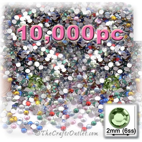 10,000pc Rhinestones crystals Round Shape made of Quality Acrylic sparkling with multi Facetted sides and flat top Solid Colors Assortment - 5 Colors (Clear, Yellow, Royal Blue, Emerald Green, Ruby Red) Gems Flatback with Silver Aluminum foil mirror backing size - 2mm about Buy these rhinestones and embellish a variety of crafts projects. You can add these Acrylic facetted rhinestones to many projectsAdd gemstones to Baby Keepsake items Blitz your nails with rhinestones Highlight your scrapbook