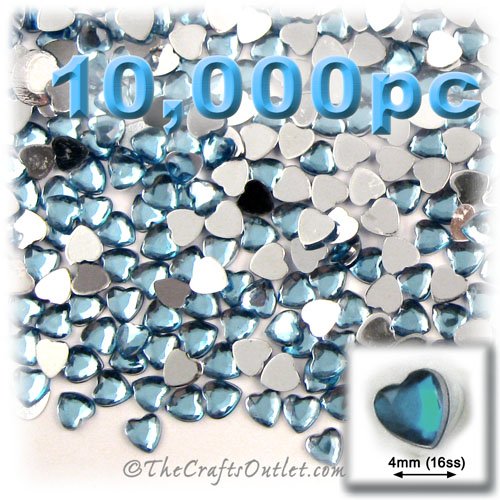 10,000pc Rhinestones crystals Heart Shape made of Quality Acrylic sparkling with multi Facetted sides and flat top Light Blue Gems Flatback with Silver Aluminum foil mirror backing Buy these rhinestones and embellish a variety of crafts projects. You can add these Acrylic facetted rhinestones to many projectsAdd gemstones to Baby Keepsake items Blitz your nails with rhinestones Highlight your scrapbook memory pages with these colourful jewels Dazzle your picture frames and make unique memories f