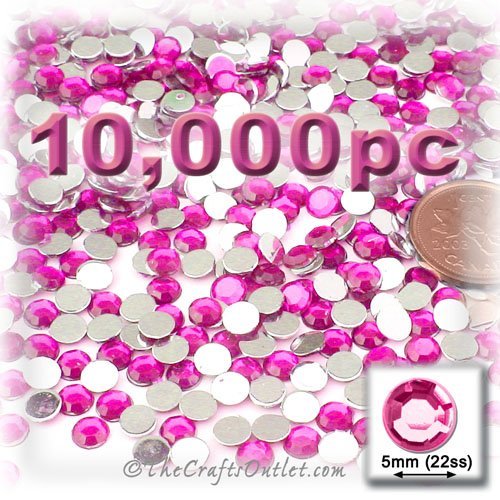 10,000pc Rhinestones crystals Round Shape made of Quality Acrylic sparkling with multi Facetted sides and flat top Hot Pink or Rose Gems Flatback with Silver Aluminum foil mirror backing size - 5mm about Buy these rhinestones and embellish a variety of crafts projects. You can add these Acrylic facetted rhinestones to many projectsAdd gemstones to Baby Keepsake items Blitz your nails with rhinestones Highlight your scrapbook memory pages with these colourful jewels Dazzle your picture frames and