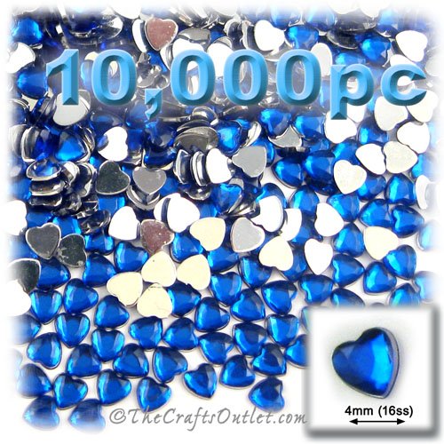 10,000pc Rhinestones crystals Heart Shape made of Quality Acrylic sparkling with multi Facetted sides and flat top Royal Blue Gems Flatback with Silver Aluminum foil mirror backing Buy these rhinestones and embellish a variety of crafts projects. You can add these Acrylic facetted rhinestones to many projectsAdd gemstones to Baby Keepsake items Blitz your nails with rhinestones Highlight your scrapbook memory pages with these colourful jewels Dazzle your picture frames and make unique memories f