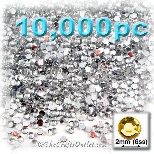 10,000pc Rhinestones Round Shape made of Quality Acrylic sparkling with multi Facetted sides and flat top Crystal Clear Flatback with Silver Aluminum foil mirror backing size - 2mm about Buy these rhinestones and embellish a variety of crafts projects. You can add these Acrylic facetted rhinestones to many projectsAdd gemstones to Baby Keepsake items Blitz your nails with rhinestones Highlight your scrapbook memory pages with these colourful jewels Dazzle your picture frames and make unique memo