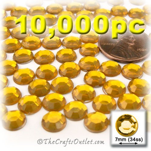 10,000pc Rhinestones Round Shape made of Quality Acrylic sparkling with multi Facetted sides and flat top Golden Yellow Gems Flatback with Silver Aluminum foil mirror backing size - 7mm about Buy these rhinestones and embellish a variety of crafts projects. You can add these Acrylic facetted rhinestones to many projectsAdd gemstones to Baby Keepsake items Blitz your nails with rhinestones Highlight your scrapbook memory pages with these colourful jewels Dazzle your picture frames and make unique