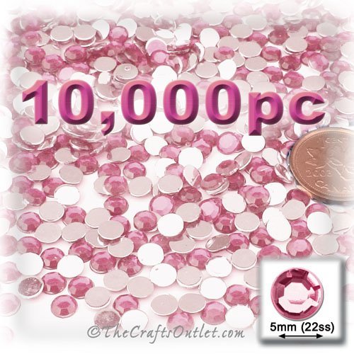 10,000pc Rhinestones crystals Round Shape made of Quality Acrylic sparkling with multi Facetted sides and flat top Light Pink or Light Rose Gems Flatback with Silver Aluminum foil mirror backing size - 5mm about Buy these rhinestones and embellish a variety of crafts projects. You can add these Acrylic facetted rhinestones to many projectsAdd gemstones to Baby Keepsake items Blitz your nails with rhinestones Highlight your scrapbook memory pages with these colourful jewels Dazzle your picture fr