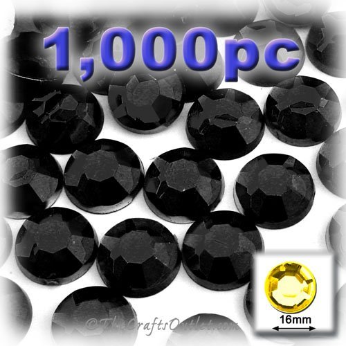 1,000pc Rhinestones Round Shape made of Quality Acrylic sparkling with multi Facetted sides and flat top Jet Black Flatback with Silver Aluminum foil mirror backing size - 16mm about Buy these rhinestones and embellish a variety of crafts projects. You can add these Acrylic facetted rhinestones to many projectsAdd gemstones to Baby Keepsake items Blitz your nails with rhinestones Highlight your scrapbook memory pages with these colourful jewels Dazzle your picture frames and make unique memories
