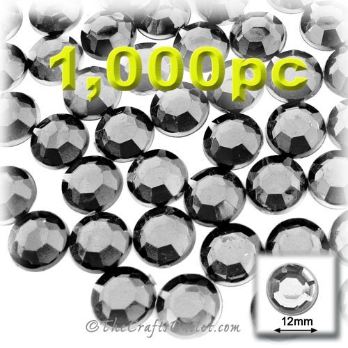 1,000pc Rhinestones Round Shape made of Quality Acrylic sparkling with multi Facetted sides and flat top Charcoal Gray Flatback with Silver Aluminum foil mirror backing size - 12mm about Buy these rhinestones and embellish a variety of crafts projects. You can add these Acrylic facetted rhinestones to many projectsAdd gemstones to Baby Keepsake items Blitz your nails with rhinestones Highlight your scrapbook memory pages with these colourful jewels Dazzle your picture frames and make unique memo