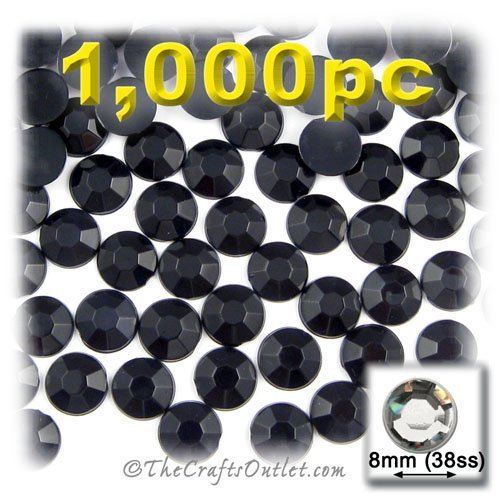 1,000pc Rhinestones Round Shape made of Quality Acrylic sparkling with multi Facetted sides and flat top Jet Black Flatback with Silver Aluminum foil mirror backing size - 8mm about Buy these rhinestones and embellish a variety of crafts projects. You can add these Acrylic facetted rhinestones to many projectsAdd gemstones to Baby Keepsake items Blitz your nails with rhinestones Highlight your scrapbook memory pages with these colourful jewels Dazzle your picture frames and make unique memories