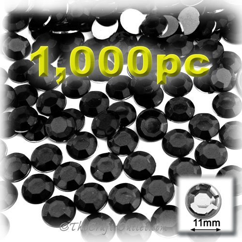 1,000pc Rhinestones Round Shape made of Quality Acrylic sparkling with multi Facetted sides and flat top Jet Black Flatback with Silver Aluminum foil mirror backing size - 11mm about Buy these rhinestones and embellish a variety of crafts projects. You can add these Acrylic facetted rhinestones to many projectsAdd gemstones to Baby Keepsake items Blitz your nails with rhinestones Highlight your scrapbook memory pages with these colourful jewels Dazzle your picture frames and make unique memories