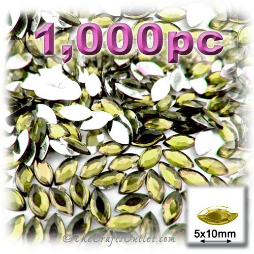 1,000pc Rhinestones Eye Shaped (Navette) Shape made of Quality Acrylic sparkling with multi Facetted sides and flat top Olive Green Gems Flatback with Silver Aluminum foil mirror backing size - 5x10mmBuy these rhinestones and embellish a variety of crafts projects. You can add these Acrylic facetted rhinestones to many projectsAdd gemstones to Baby Keepsake items Blitz your nails with rhinestones Highlight your scrapbook memory pages with these colourful jewels Dazzle your picture frames and mak