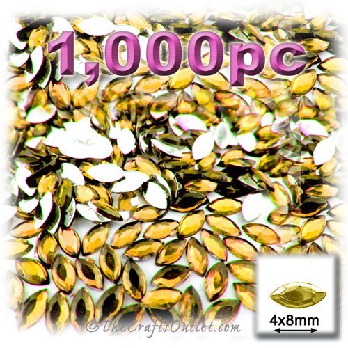 1,000pc Rhinestones Eye Shaped (Navette) Shape made of Quality Acrylic sparkling with multi Facetted sides and flat top Golden Yellow Gems Flatback with Silver Aluminum foil mirror backing size - 4x8mmBuy these rhinestones and embellish a variety of crafts projects. You can add these Acrylic facetted rhinestones to many projectsAdd gemstones to Baby Keepsake items Blitz your nails with rhinestones Highlight your scrapbook memory pages with these colourful jewels Dazzle your picture frames and ma