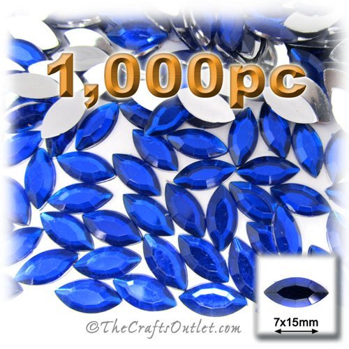 1,000pc Rhinestones crystals Eye Shaped (Navette) Shape made of Quality Acrylic sparkling with multi Facetted sides and flat top Royal Blue Gems Flatback with Silver Aluminum foil mirror backing size - 7x15mmBuy these rhinestones and embellish a variety of crafts projects. You can add these Acrylic facetted rhinestones to many projectsAdd gemstones to Baby Keepsake items Blitz your nails with rhinestones Highlight your scrapbook memory pages with these colourful jewels Dazzle your picture frames