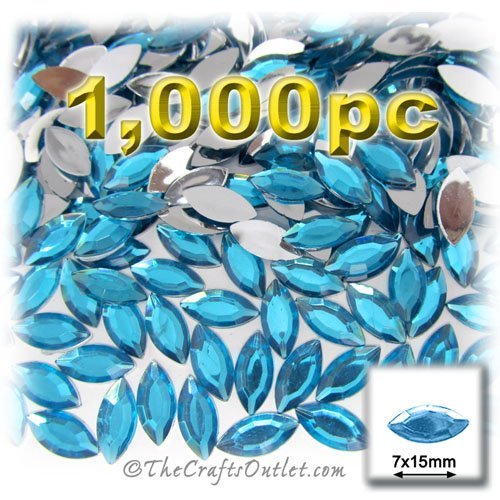 1,000pc Rhinestones crystals Eye Shaped (Navette) Shape made of Quality Acrylic sparkling with multi Facetted sides and flat top Aqua Blue Gems Flatback with Silver Aluminum foil mirror backing size - 7x15mmBuy these rhinestones and embellish a variety of crafts projects. You can add these Acrylic facetted rhinestones to many projectsAdd gemstones to Baby Keepsake items Blitz your nails with rhinestones Highlight your scrapbook memory pages with these colourful jewels Dazzle your picture frames