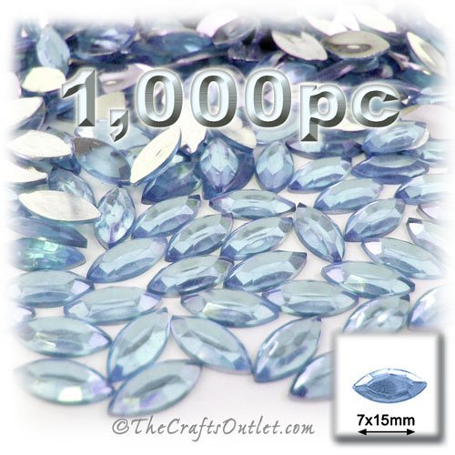 1,000pc Rhinestones crystals Eye Shaped (Navette) Shape made of Quality Acrylic sparkling with multi Facetted sides and flat top Light Blue Gems Flatback with Silver Aluminum foil mirror backing size - 7x15mmBuy these rhinestones and embellish a variety of crafts projects. You can add these Acrylic facetted rhinestones to many projectsAdd gemstones to Baby Keepsake items Blitz your nails with rhinestones Highlight your scrapbook memory pages with these colourful jewels Dazzle your picture frames