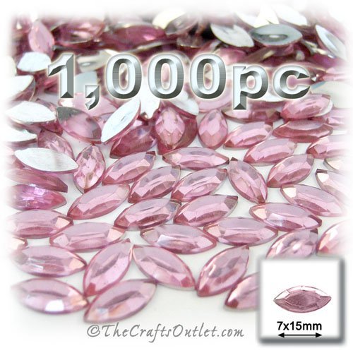 1,000pc Rhinestones crystals Eye Shaped (Navette) Shape made of Quality Acrylic sparkling with multi Facetted sides and flat top Light Pink or Light Rose Gems Flatback with Silver Aluminum foil mirror backing size - 7x15mmBuy these rhinestones and embellish a variety of crafts projects. You can add these Acrylic facetted rhinestones to many projectsAdd gemstones to Baby Keepsake items Blitz your nails with rhinestones Highlight your scrapbook memory pages with these colourful jewels Dazzle your