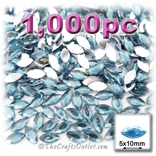 1,000pc Rhinestones crystals Eye Shaped (Navette) Shape made of Quality Acrylic sparkling with multi Facetted sides and flat top Light Blue Gems Flatback with Silver Aluminum foil mirror backing size - 5x10mmBuy these rhinestones and embellish a variety of crafts projects. You can add these Acrylic facetted rhinestones to many projectsAdd gemstones to Baby Keepsake items Blitz your nails with rhinestones Highlight your scrapbook memory pages with these colourful jewels Dazzle your picture frames