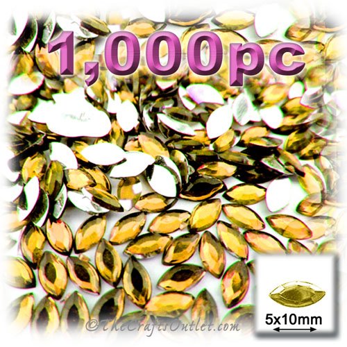 1,000pc Rhinestones Eye Shaped (Navette) Shape made of Quality Acrylic sparkling with multi Facetted sides and flat top Golden Yellow Gems Flatback with Silver Aluminum foil mirror backing size - 5x10mmBuy these rhinestones and embellish a variety of crafts projects. You can add these Acrylic facetted rhinestones to many projectsAdd gemstones to Baby Keepsake items Blitz your nails with rhinestones Highlight your scrapbook memory pages with these colourful jewels Dazzle your picture frames and m