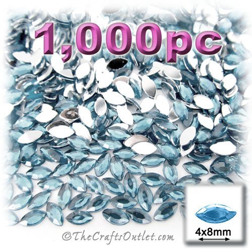 1,000pc Rhinestones crystals Eye Shaped (Navette) Shape made of Quality Acrylic sparkling with multi Facetted sides and flat top Light Blue Gems Flatback with Silver Aluminum foil mirror backing size - 4x8mmBuy these rhinestones and embellish a variety of crafts projects. You can add these Acrylic facetted rhinestones to many projectsAdd gemstones to Baby Keepsake items Blitz your nails with rhinestones Highlight your scrapbook memory pages with these colourful jewels Dazzle your picture frames