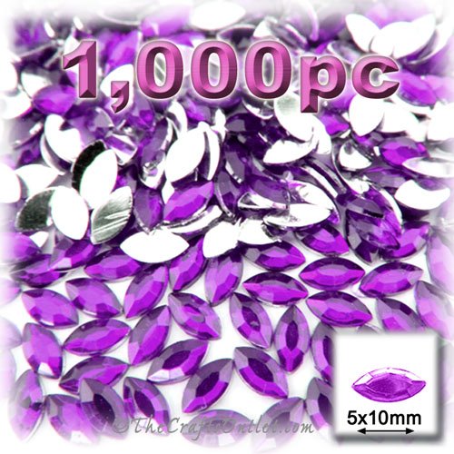 1,000pc Rhinestones Eye Shaped (Navette) Shape made of Quality Acrylic sparkling with multi Facetted sides and flat top Purple Gems Flatback with Silver Aluminum foil mirror backing size - 5x10mmBuy these rhinestones and embellish a variety of crafts projects. You can add these Acrylic facetted rhinestones to many projectsAdd gemstones to Baby Keepsake items Blitz your nails with rhinestones Highlight your scrapbook memory pages with these colourful jewels Dazzle your picture frames and make uni