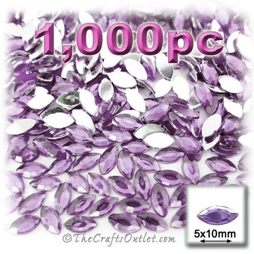 1,000pc Rhinestones crystals Eye Shaped (Navette) Shape made of Quality Acrylic sparkling with multi Facetted sides and flat top Lavender Light Purple Gems Flatback with Silver Aluminum foil mirror backing size - 5x10mmBuy these rhinestones and embellish a variety of crafts projects. You can add these Acrylic facetted rhinestones to many projectsAdd gemstones to Baby Keepsake items Blitz your nails with rhinestones Highlight your scrapbook memory pages with these colourful jewels Dazzle your pic