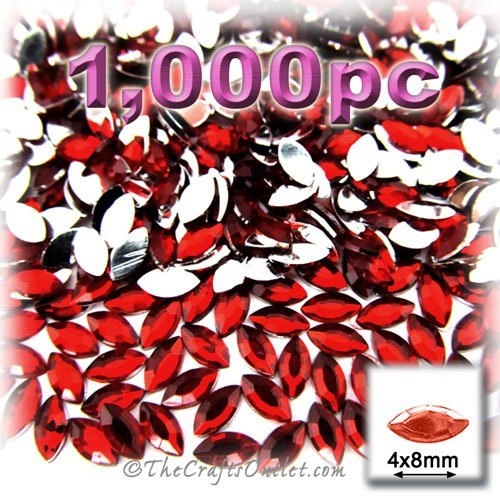 1,000pc Rhinestones crystals Eye Shaped (Navette) Shape made of Quality Acrylic sparkling with multi Facetted sides and flat top Devil red Wine Gems Flatback with Silver Aluminum foil mirror backing size - 4x8mmBuy these rhinestones and embellish a variety of crafts projects. You can add these Acrylic facetted rhinestones to many projectsAdd gemstones to Baby Keepsake items Blitz your nails with rhinestones Highlight your scrapbook memory pages with these colourful jewels Dazzle your picture fra