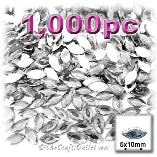 1,000pc Rhinestones Eye Shaped (Navette) Shape made of Quality Acrylic sparkling with multi Facetted sides and flat top Crystal Clear Flatback with Silver Aluminum foil mirror backing size - 5x10mmBuy these rhinestones and embellish a variety of crafts projects. You can add these Acrylic facetted rhinestones to many projectsAdd gemstones to Baby Keepsake items Blitz your nails with rhinestones Highlight your scrapbook memory pages with these colourful jewels Dazzle your picture frames and make u