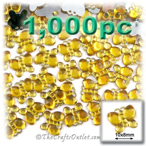 1000pc Rhinestones crystals Mini Butterfly Shape made of Quality Acrylic sparkeling with multi Facetted sides and flat top Golden Yellow Gems Flatback with Silver Aluminum foil mirror backing size - 10x8mm about Buy these rhinestones and embellish a variety of crafts projects. You can add these Acrylic facetted rhinestones to many projectsAdd gemstones to Baby Keepsake items Blitz your nails with rhinestones Highlight your scrapbook memory pages with these colorful jewels Dazzle your picture fra