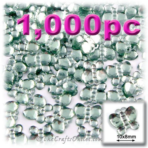 1000pc Rhinestones crystals Mini Butterfly Shape made of Quality Acrylic sparkeling with multi Facetted sides and flat top Light Green Gems Flatback with Silver Aluminum foil mirror backing size - 10x8mm about Buy these rhinestones and embellish a variety of crafts projects. You can add these Acrylic facetted rhinestones to many projectsAdd gemstones to Baby Keepsake items Blitz your nails with rhinestones Highlight your scrapbook memory pages with these colorful jewels Dazzle your picture frame