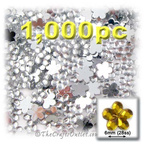 1000pc Rhinestones crystals Mini Flower Shape made of Quality Acrylic sparkeling with multi Facetted sides and flat top Crystal clear Gems Flatback with Silver Aluminum foil mirror backing size - 6mm about Buy these rhinestones and embellish a variety of crafts projects. You can add these Acrylic facetted rhinestones to many projectsAdd gemstones to Baby Keepsake items Blitz your nails with rhinestones Highlight your scrapbook memory pages with these colorful jewels Dazzle your picture frames a