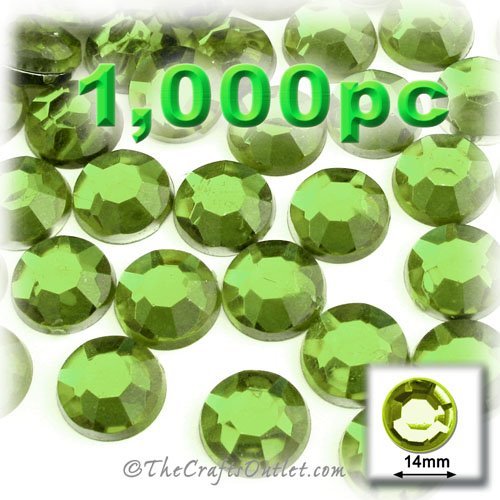 1,000pc Rhinestones crystals Round Shape made of Quality Acrylic sparkling with multi Facetted sides and flat top Peridot Light Green Gems Flatback with Silver Aluminum foil mirror backing size - 14mm about Buy these rhinestones and embellish a variety of crafts projects. You can add these Acrylic facetted rhinestones to many projectsAdd gemstones to Baby Keepsake items Blitz your nails with rhinestones Highlight your scrapbook memory pages with these colourful jewels Dazzle your picture frames