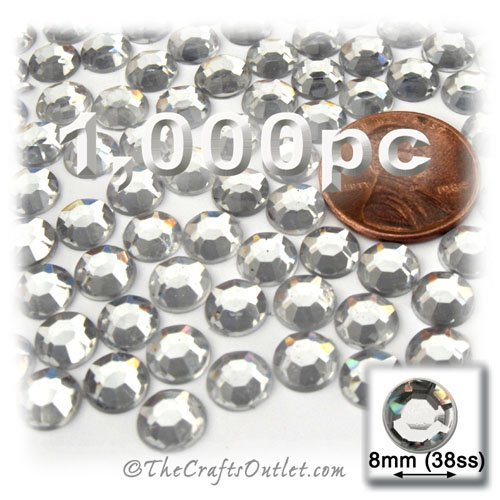 1,000pc Rhinestones Round Shape made of Quality Acrylic sparkling with multi Facetted sides and flat top Crystal Clear Flatback with Silver Aluminum foil mirror backing size - 8mm about Buy these rhinestones and embellish a variety of crafts projects. You can add these Acrylic facetted rhinestones to many projectsAdd gemstones to Baby Keepsake items Blitz your nails with rhinestones Highlight your scrapbook memory pages with these colourful jewels Dazzle your picture frames and make unique memor