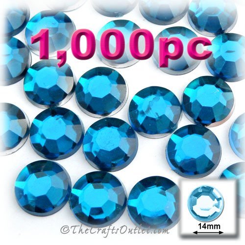 1,000pc Rhinestones crystals Round Shape made of Quality Acrylic sparkling with multi Facetted sides and flat top Aqua Blue Gems Flatback with Silver Aluminum foil mirror backing size - 14mm about Buy these rhinestones and embellish a variety of crafts projects. You can add these Acrylic facetted rhinestones to many projectsAdd gemstones to Baby Keepsake items Blitz your nails with rhinestones Highlight your scrapbook memory pages with these colourful jewels Dazzle your picture frames and make u