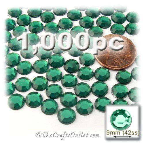 1,000pc Rhinestones crystals Round Shape made of Quality Acrylic sparkling with multi Facetted sides and flat top Emerald Green Gems Flatback with Silver Aluminum foil mirror backing size - 9mm about Buy these rhinestones and embellish a variety of crafts projects. You can add these Acrylic facetted rhinestones to many projectsAdd gemstones to Baby Keepsake items Blitz your nails with rhinestones Highlight your scrapbook memory pages with these colourful jewels Dazzle your picture frames and mak