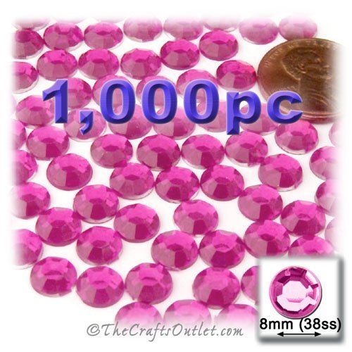 1,000pc Rhinestones crystals Round Shape made of Quality Acrylic sparkling with multi Facetted sides and flat top Hot Pink or Rose Gems Flatback with Silver Aluminum foil mirror backing size - 8mm about Buy these rhinestones and embellish a variety of crafts projects. You can add these Acrylic facetted rhinestones to many projectsAdd gemstones to Baby Keepsake items Blitz your nails with rhinestones Highlight your scrapbook memory pages with these colourful jewels Dazzle your picture frames and