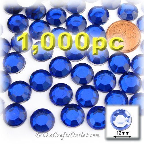 1,000pc Rhinestones crystals Round Shape made of Quality Acrylic sparkling with multi Facetted sides and flat top Royal Blue Gems Flatback with Silver Aluminum foil mirror backing size - 12mm about Buy these rhinestones and embellish a variety of crafts projects. You can add these Acrylic facetted rhinestones to many projectsAdd gemstones to Baby Keepsake items Blitz your nails with rhinestones Highlight your scrapbook memory pages with these colourful jewels Dazzle your picture frames and make