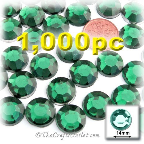 1,000pc Rhinestones crystals Round Shape made of Quality Acrylic sparkling with multi Facetted sides and flat top Emerald Green Gems Flatback with Silver Aluminum foil mirror backing size - 14mm about Buy these rhinestones and embellish a variety of crafts projects. You can add these Acrylic facetted rhinestones to many projectsAdd gemstones to Baby Keepsake items Blitz your nails with rhinestones Highlight your scrapbook memory pages with these colourful jewels Dazzle your picture frames and ma