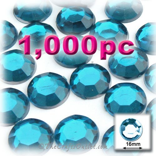 1,000pc Rhinestones crystals Round Shape made of Quality Acrylic sparkling with multi Facetted sides and flat top Aqua Blue Gems Flatback with Silver Aluminum foil mirror backing size - 16mm about Buy these rhinestones and embellish a variety of crafts projects. You can add these Acrylic facetted rhinestones to many projectsAdd gemstones to Baby Keepsake items Blitz your nails with rhinestones Highlight your scrapbook memory pages with these colourful jewels Dazzle your picture frames and make u